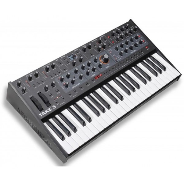 Sequential Take 5 – 44-клавишный полифонический синтезатор с 5-голосной архитектурой, 2 аналоговыми осцилляторами на голос, субосцилятором, генератором шума, hard sync, секцией микшера, 1 многорежимным аналоговым фильтром на голос, 1 цифровым высокочастотным фильтром на голос и секцией эффектов.